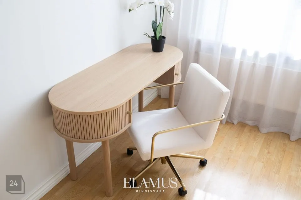 * Kabinet – kohe esikust paremal, sisustatud kirjutuslaua ja tooliga – valmis kodukontoriks või õppimisnurgaks.