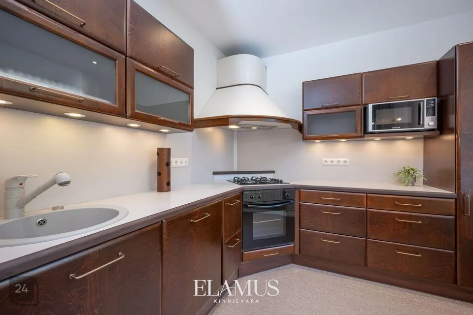 * Köök – kaasaegne ja praktiline, varustatud gaasipliidi, nõudepesumasina, ahju, külmkapi-sügavkülmiku ja piisavate kappidega.