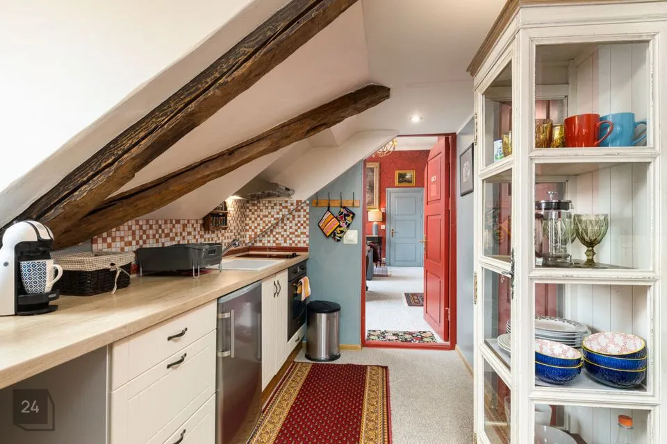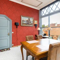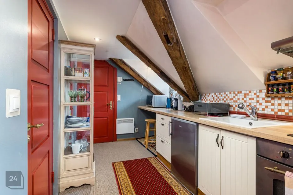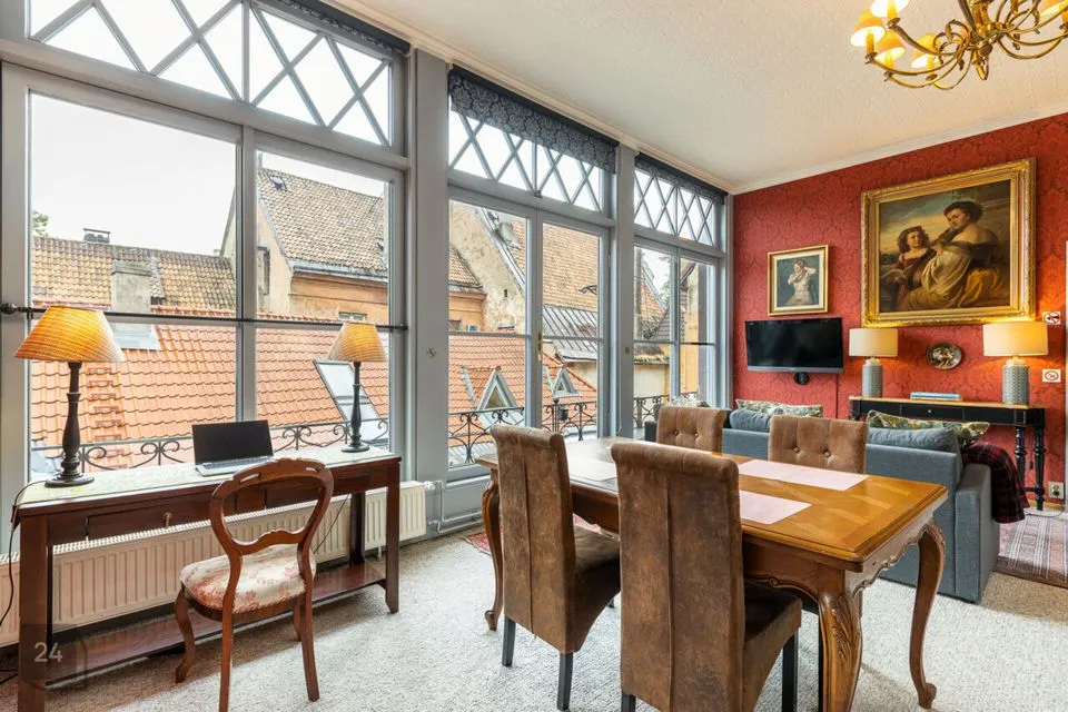 This apartment with great character in a house located in the courtyard of the Old Town is perfect for a creative person, because the spacious windows allow your thoughts to fly, and due to its quiet nature, you can direct this flight of thoughts into creation. In addition to a good working environment, you can relax comfortably in your own sauna in the apartment.