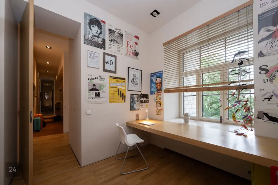 Avatud köögiga ja söögilauana kasutatava saarega avar elutuba kuni 6 inimese originaal MANG diivaniga. Magamistuba king size voodiga. Töötuba-kabinet-raamatukogu. Lastetuba-külalistetuba. Walk in garderoob ja panipaigad.