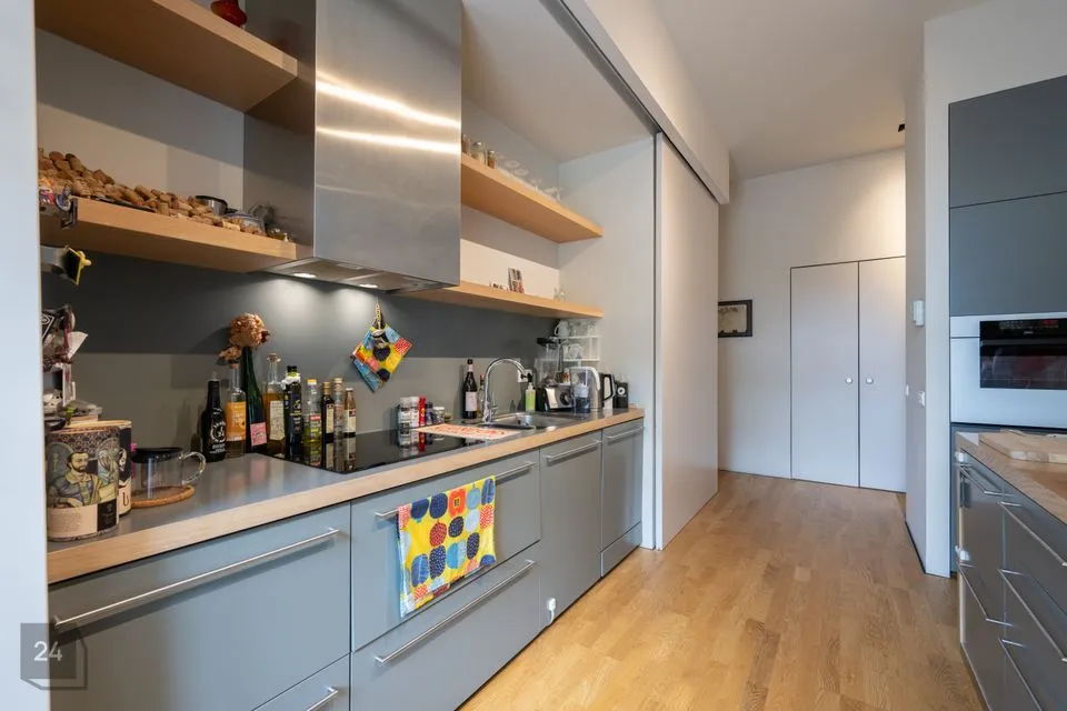 Korter 104.2m2, täielikult sisustatud eritellimusmööbliga ja tervikliku köögi ja kodutehnikaga. Ajatu sisearhitektuur, kvaliteetsed materjalid, osa kunsti ja maale jääb seintele.