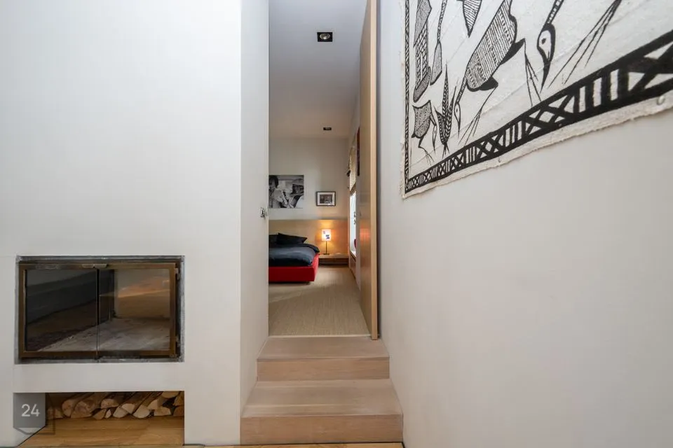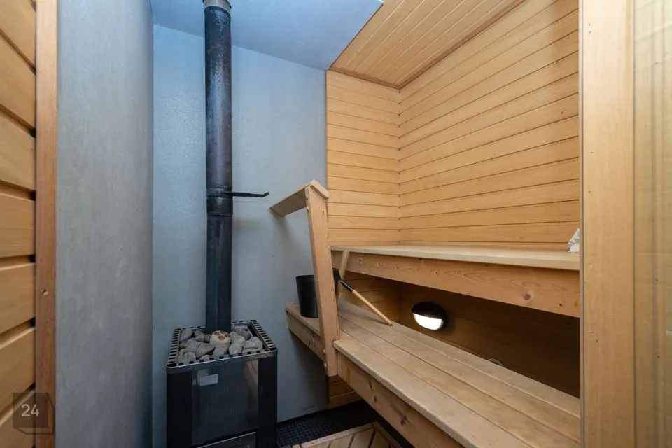 Unikaalsed mugavused: Moodne kahepoolne kamin elutoa ja magamistoa vahel, autonoomne gaasiküte, vanniga vannitoas välitemperatuuriga seotud põrandaküte, puiduga köetav saun, 2 eraldi sissepääsu korterisse.