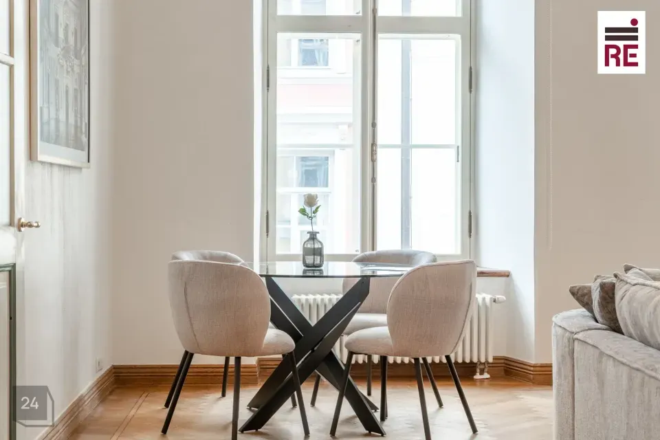 Korter on avatud planeeringuga ning kõrgete lagedega - siin on valgust ja avarust. Interjöör - kaasaegne maitsekas stiil, mis arvestab maja ajaloolise taustaga harmoneerub ajaloolise hoonega ideaalselt - selles kodus tunned end tõeliselt koduselt ja mugavalt. Siseviimistluses on kasutatud naturaalseid toone ja luksuslikkust lisavaid detaile.