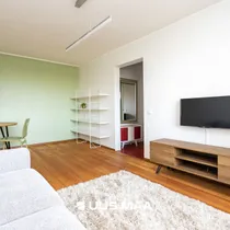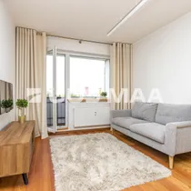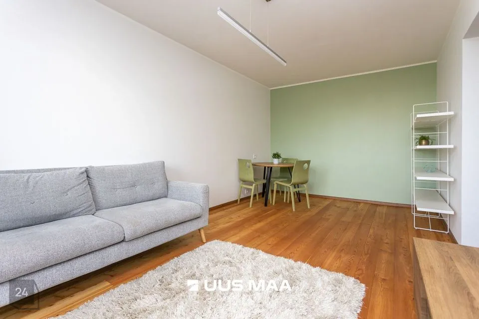 Hubaselt möbleeritud korteris on elutuba, magamistuba, köök, vannituba ja rõdu.