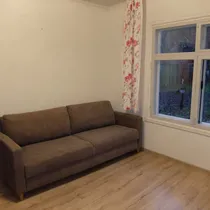 Kahetoaline osaliselt möbleeritud korter. Üks tuba osalise vaheseinaga kaheks jagatud, mis lisab privaatse nurgakesena veel "kolmanda toa". Suurepärane asukoht, eramaja miljöö, oma aed. Kõik elementaarsed mugavused olemas. Äsja tehtud värskendusremont. Otse omanikult, ilma vahendustasuta! KÜ kulusid ei lisandu, peale üüri tuleb maksta üksnes haldustasu ning vesi ja elekter vastavalt tegelikule tarbimisele.
