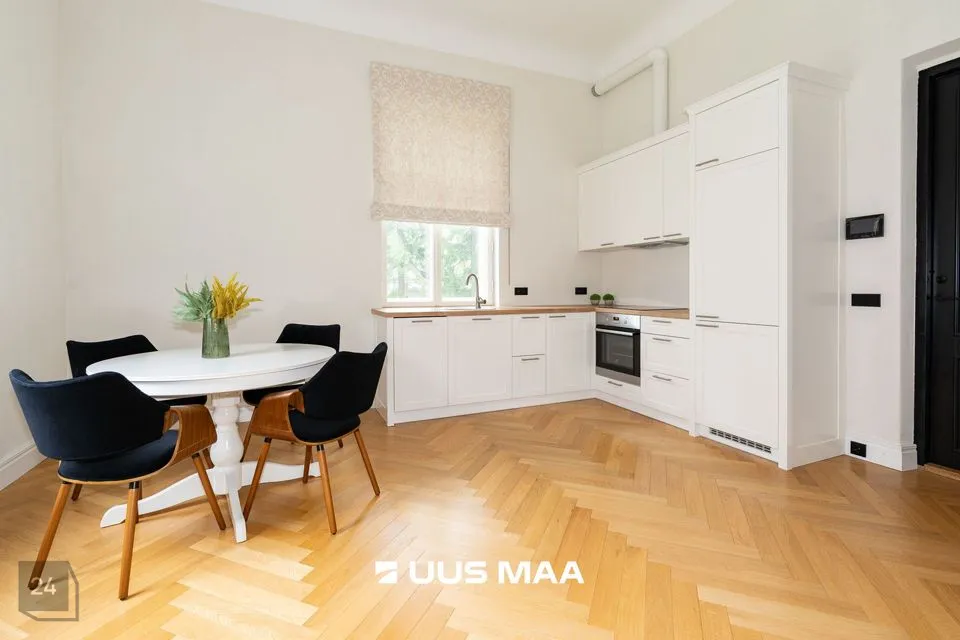 Korter on uus, kus on jälgitud ajastutruud sisekujundust. See kodu on avatud planeeringuga, kõrgete lagedega ning walk-in garderoobiga.