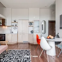 Korteri akendest avaneb vaade Tallinna sadamale ja ikoonilisele Eesti Arhitektuuri Muuseumile ajaloolises soolaladu hoones. Asukoht on vanalinna ja Rotermani kvartali piiril mis tagab mugava liikumise kas jala või autoga. Parkimine on sisehoovis. Üürihind 1350/kuus sisaldab fikseerituid kommunaalmakseid, lisaks tuleb tasuda interneti eest.
