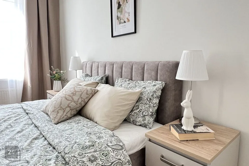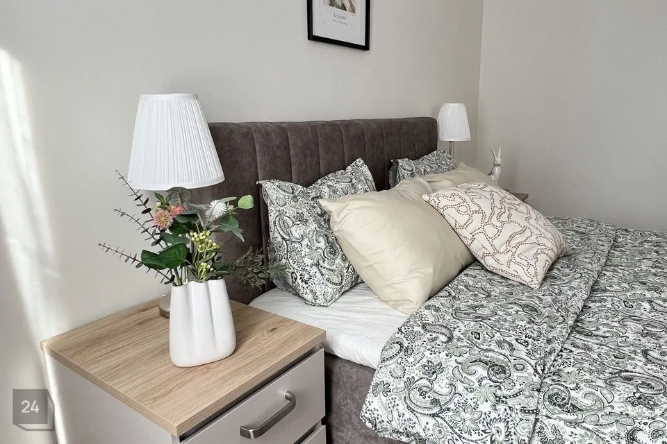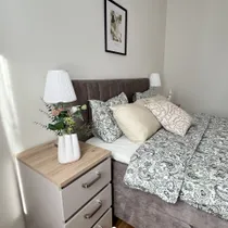 Mugav uus voodi, öökappid, söögilaud toolidega, mugav diivan , uus köök tehnikaga ja uue külmkappiga, mugav suur kapp esikus ja kõik vajalik dušši ruumis.