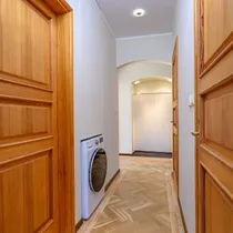Sinu uues kodus ootab Sind avar läbikäidav elutuba ning 2 eraldiseisvat magamistuba, milles mõlemas on olemas mahukad kapid ning ühes ka suur voodi. Elutuba on sisustatud diivani ja telekaalusega. Korteris on olemas kõik eluks vajalik tehnika – ahi/pliit, külmkapp, pesumasin-kuivati.