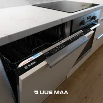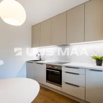 Köök on värskelt renoveeritud ja varustatud induktsioonpliidi, külmiku, nõudpesumasina ja praeahjuga.