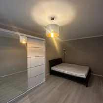 Olemas on kõik mugavaks eluks vajalik: köögimööbel, külmik, pliit, pesumasin, voodi ja riidekapp.