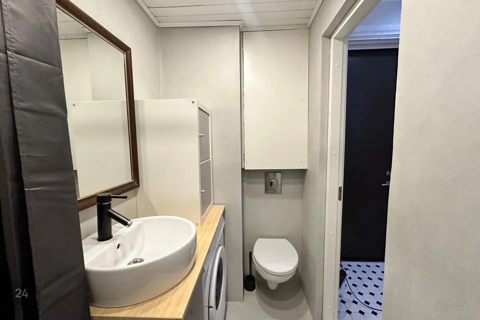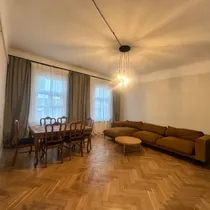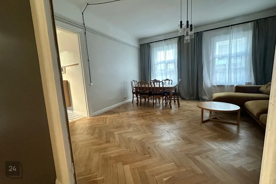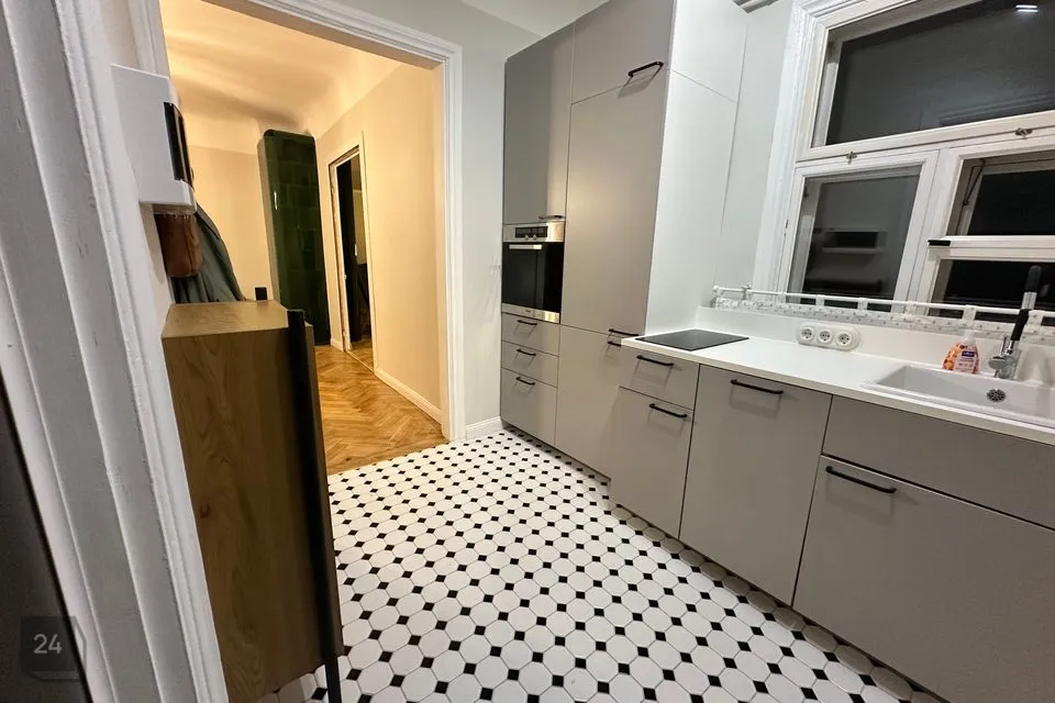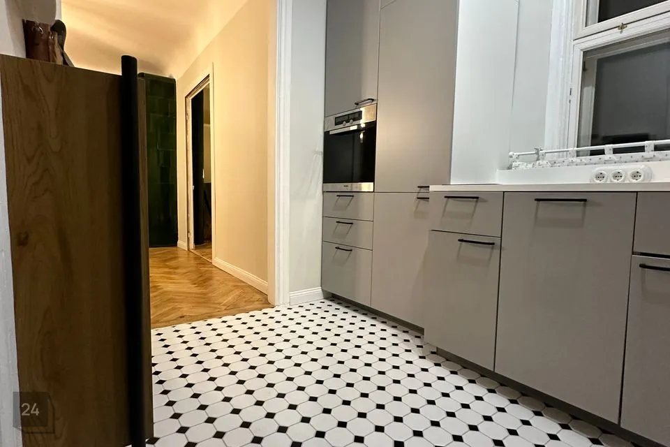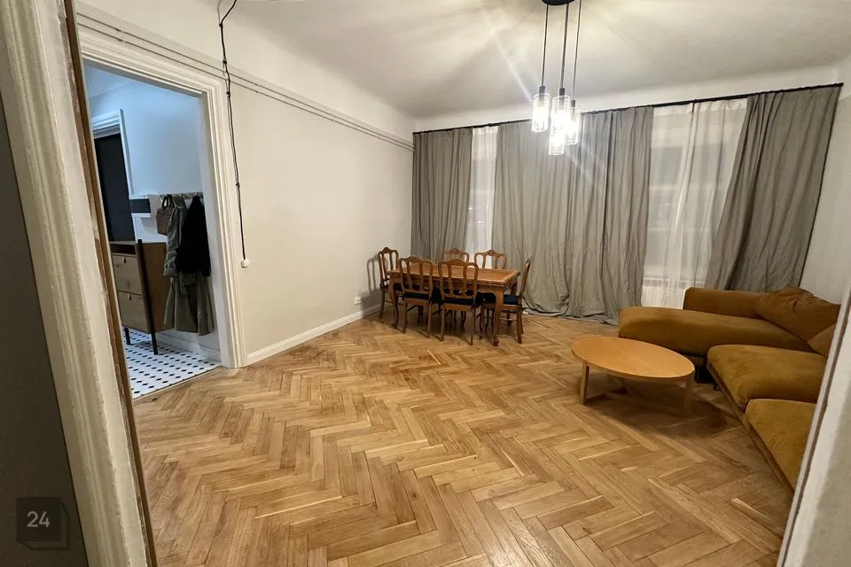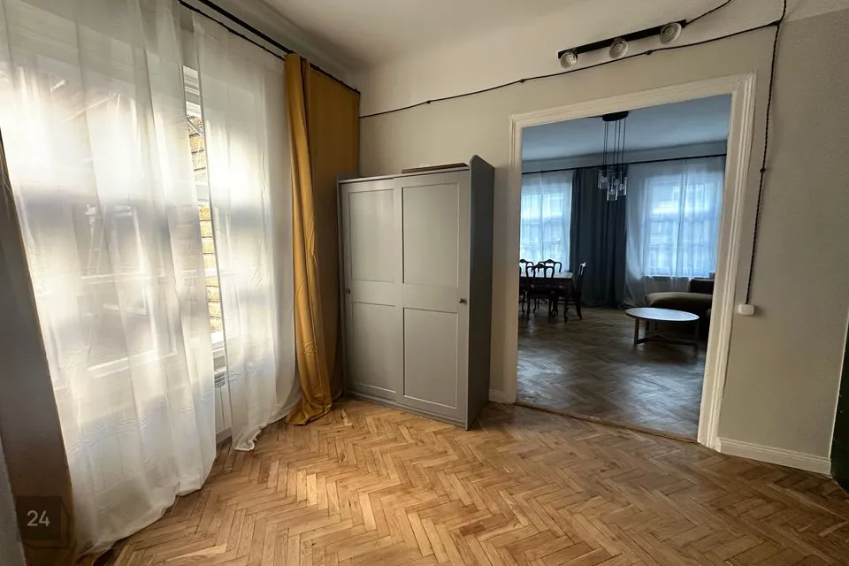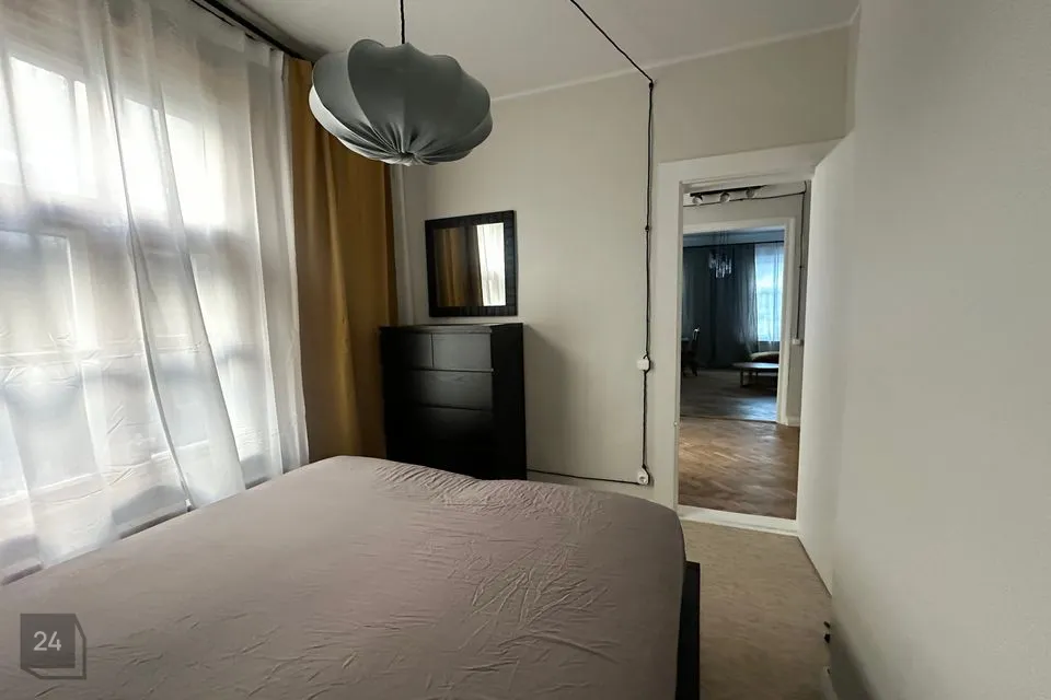 Tatari tänava liikluskoormus ei ole sellel lõigul eriti suur ning korter on asukohta arvestades üllatavalt vaikne. Korteris on avar elutuba, läbikäidav tuba, mis sobiks suurpäraselt näiteks kontoriruumiks, ja õdus magamistuba. Elutoa aknad avanevad Tatari tänava poole, teiste tubade omad sisehoovi. Magamistoa põrandat katab naturaalne vaipkate, teistes tubades on puhastatud ja õlitatud algupärane kalasabaparkett. Korteris on parasjagu mugavaks äraolemiseks vajalikku mööblit. Sh 160 cm voodi ja kummut magamistoas, riidekapp ja mõnusad tugitoolid vahetoas, erakordselt suur ja mugav diivan elutoas. Lisaks söögilaud ja kuus tooli. Kui üürnik soovib, saame kokkuleppel veel vajalikke asju juurde hankida (nt kirjutuslaud, televiisor). Köögis on küpsetusahi, täissuuruses külmik, kahe küpsetusalaga induktsioonpliit, nõudepesumasin ja piisavalt hoiuruumi kõige vajaliku jaoks. Stiilse oktagonmustrilise köögipõranda all on gaasi pealt toimiv põrandaküte. Kuna köök täidab ühtlasi esikufunktsiooni, on seal ka jalatsikapp ja riidenagi. Suuremad üleriided saab viia vahetoas asuvasse riidekappi. Vannituba katab jala all mõnus ja lihtsasti hooldatav mikrotsement ning sinna on mahutatud ka tutikas pesumasin. Toad ja vee kütab soojaks tsentraalne gaas. Pott-ahi ei ole köetav. Trepikoda jagatakse veel vaid ühe, ülemisel korrusel asuva korteriga. Lemmikloomad on lubatud, kui neil pole kombeks midagi kraapida ega lõhkuda või ebameeldivaid lõhnu endast maha jätta.