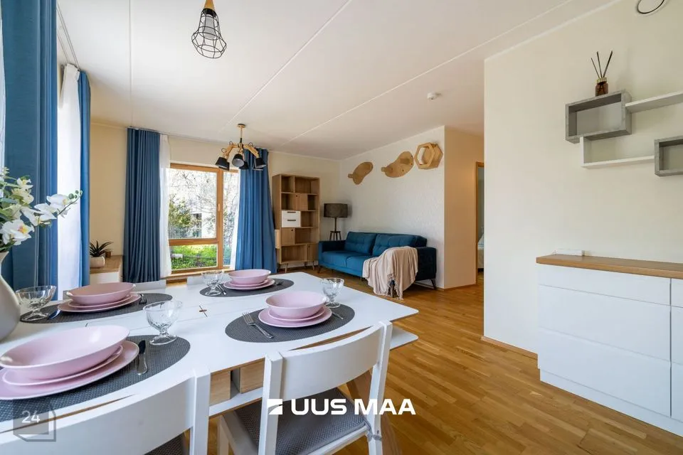 See ilus 1. korruse korter on väga hea planeeringuga ning sobib suurepärase neile peredele, kes otsivad omale kodu, mis ei oleks lihtsalt tavaline korter vaid rohkem ridaelamu tüüpi lahendus, kus on olemas ka suur terrass ja mõnus hoov. Ja sellel korteril ei ole mitte 1 vaid suisa kaks suurt terrassi - magamistoas olevale terrassile paistab hommiku- ning elutoa juures olevale terrassile õhtupäike.
