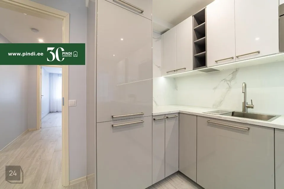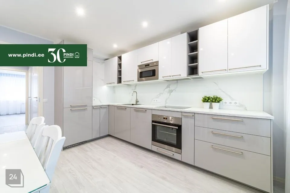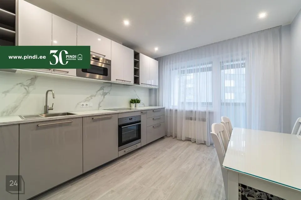 Köök on paigaldatud endisesse magamistuppa, mistõttu köögist on saanud avaram ruum, millest on pääs renoveeritud ja klaasitud rõdule. Köögis on uus köögimööbel tehnikaga (elektriline küpsetusahi, klaaskeraamiline pliidiplaat, väljatõmbekubu, mikrolaineahi, nõudepesumasin ja külmkapp sügavkülmikuga), söögilaud ja- toolid. Klaasitud ja terrassimööbliga sisustatud rõdul saab mõnusalt aega veeta.