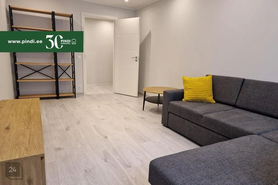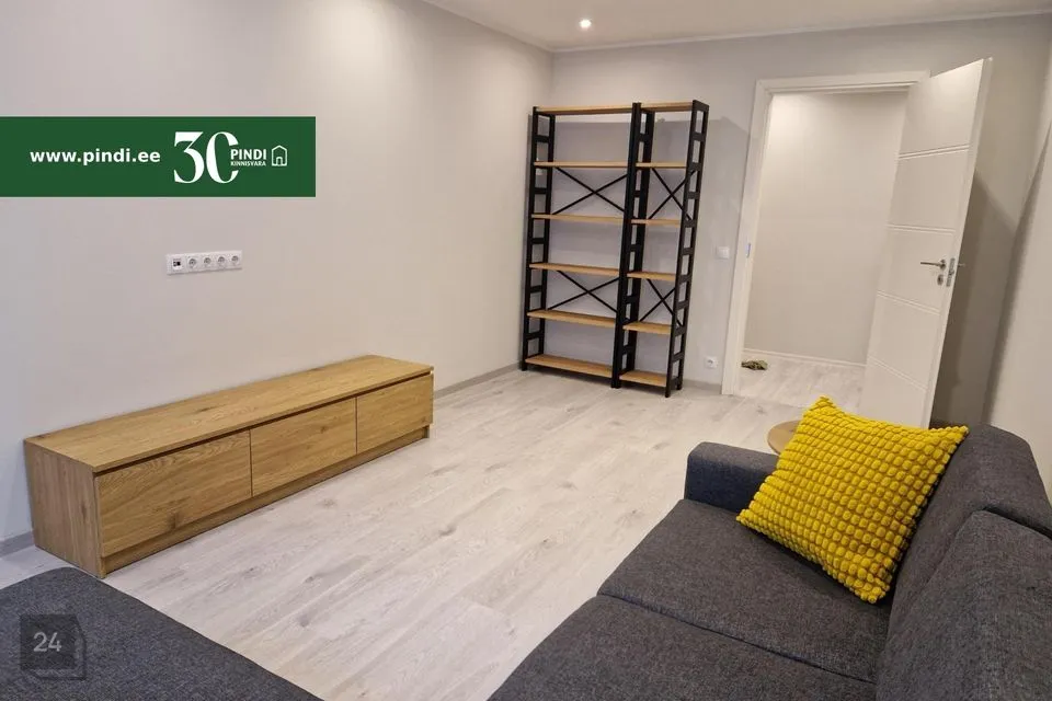Elutoas on uus diivanvoodi, diivanilaud, kummut ja riiuid. Magamistuba on möbleerimata, kuid üürilepingu sõlmimisel on üürileandjaga kokkuleppel võimalik lisada üürnikule sobiv mööbel.