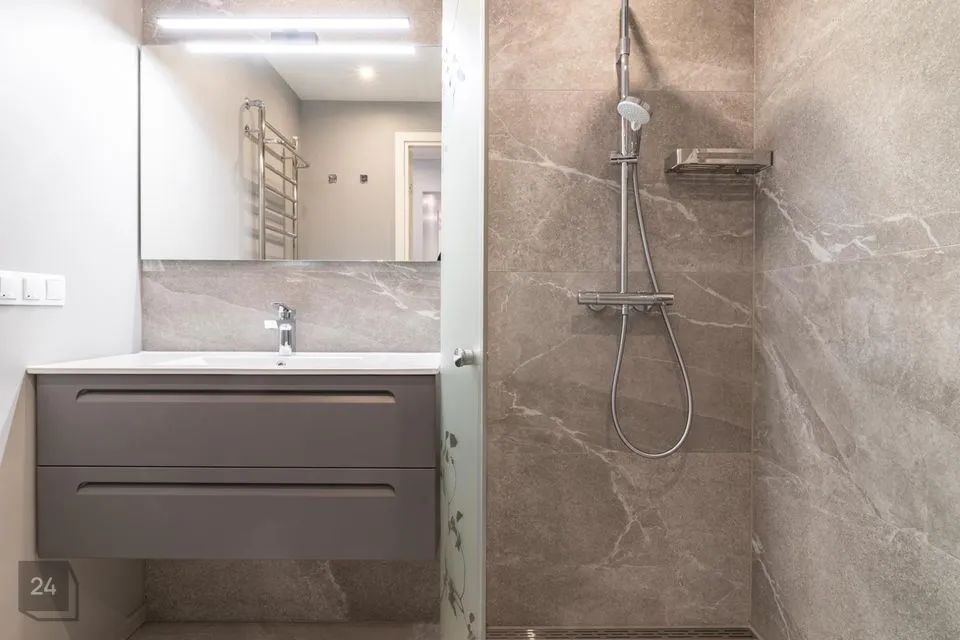 Esikus, köögis ja sanitaarruumis on plaaditud põrandad, mis muudavad korteri hoolduse ja koristamise mugavamaks. Plaaditud põrandad on varustatud elektrilise põrandaküttega, mida üürnik saab oma soovi korral reguleerida ning nende ruumide kaupa eraldi sisse- ja välja lülitada.