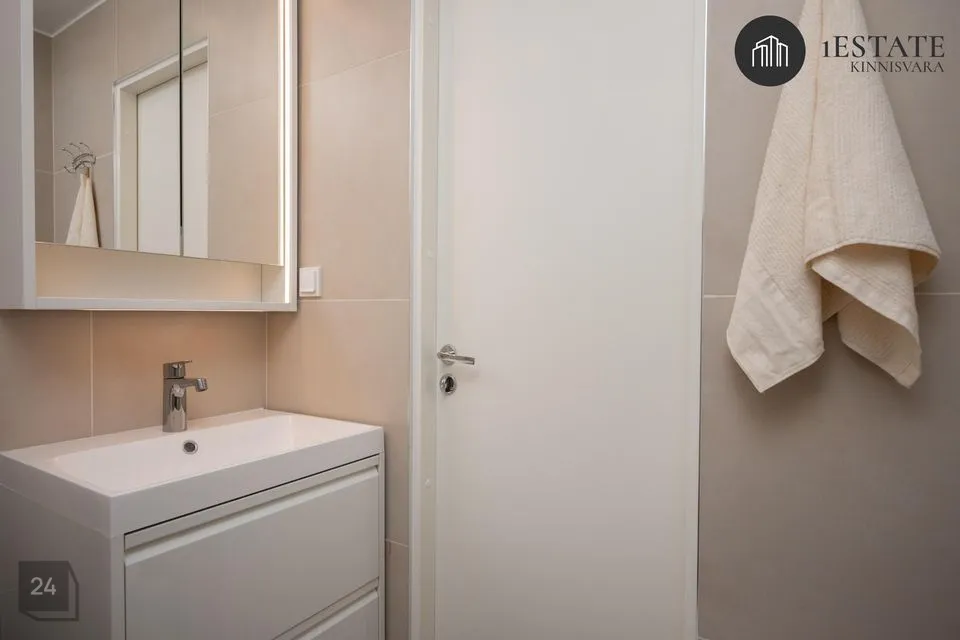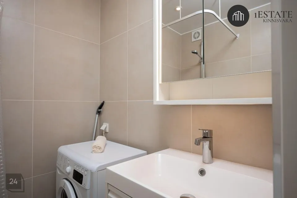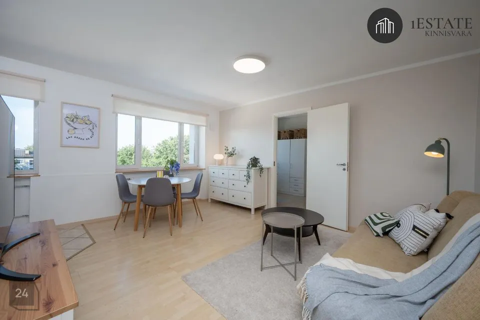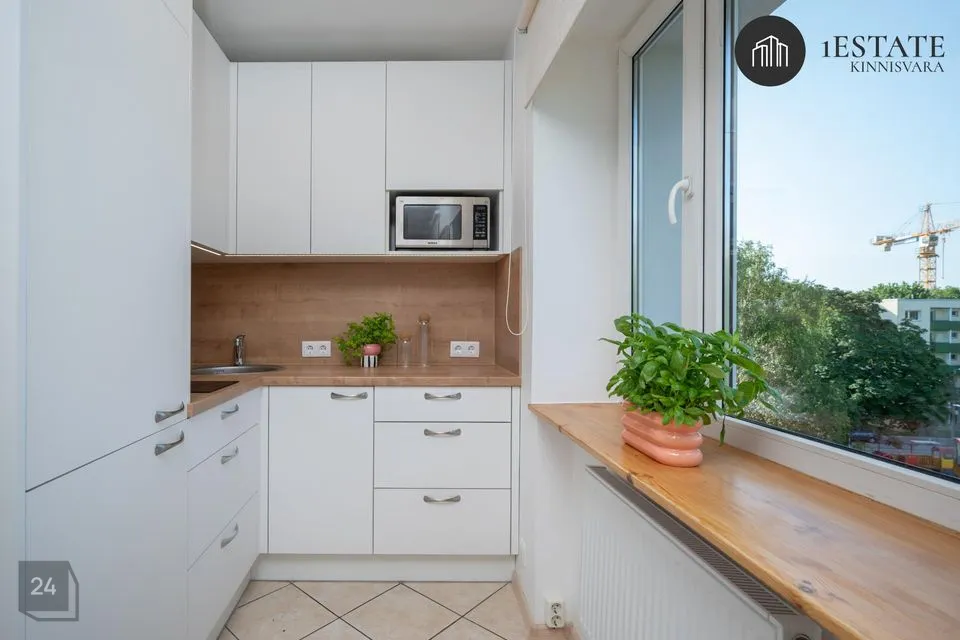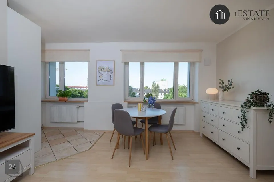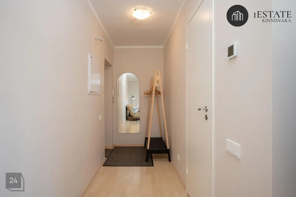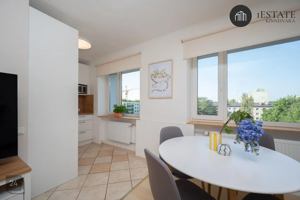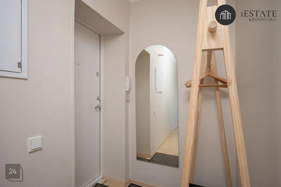 Maja 5. korrusel asuv renoveeritud ja täielikult sisustatud korter ootab uut üürnikku. Korterisse sisse astudes ootab väike esik. Esikust paremale jääb elutuba, mis tänu mitmele aknale on väga valgusküllane. Esikust elutuppa liikudes jääb vasakut kätt vannituba. Elutoast läbi liikudes on vasakul avatud köök ja otse magamistuba. Korteri aknad on hoovi poole.