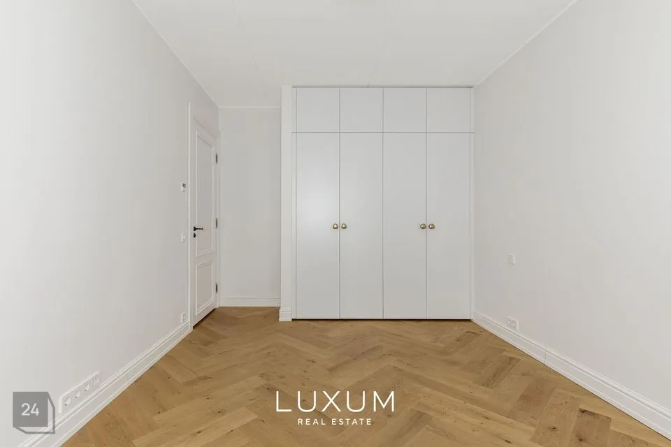Korteris on kasutatud vaid kvaliteetseid ja looduslikke materjale - läbivalt heledates toonides. Seinad on värvitud ning põrandatel on õlitatud kalasaba tammeparkett. Kogu sisseehitatud mööbel on eritellimusel valmistatud.