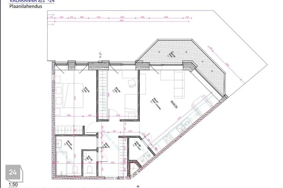 Üürileantav korter asub Kalaranna 8/2 maja 3. korrusel. Korteris on sisseehitatud mööbel, tehnika, valgustid ja aknakatted. Korter antakse üürile möbleerimata kujul, et uued elanikud saaksid kodu kujundada vastavalt oma maitsele ja vajadusele.