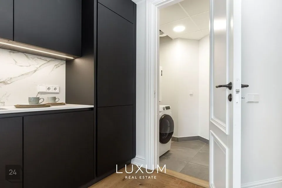 Köögis on kvaliteetne uueväärne integreeritud tehnika – külmik, nõudepesumasin, induktsioonpliit ja ahi. Majapidamisruumis on pesumasin koos kuivatiga.