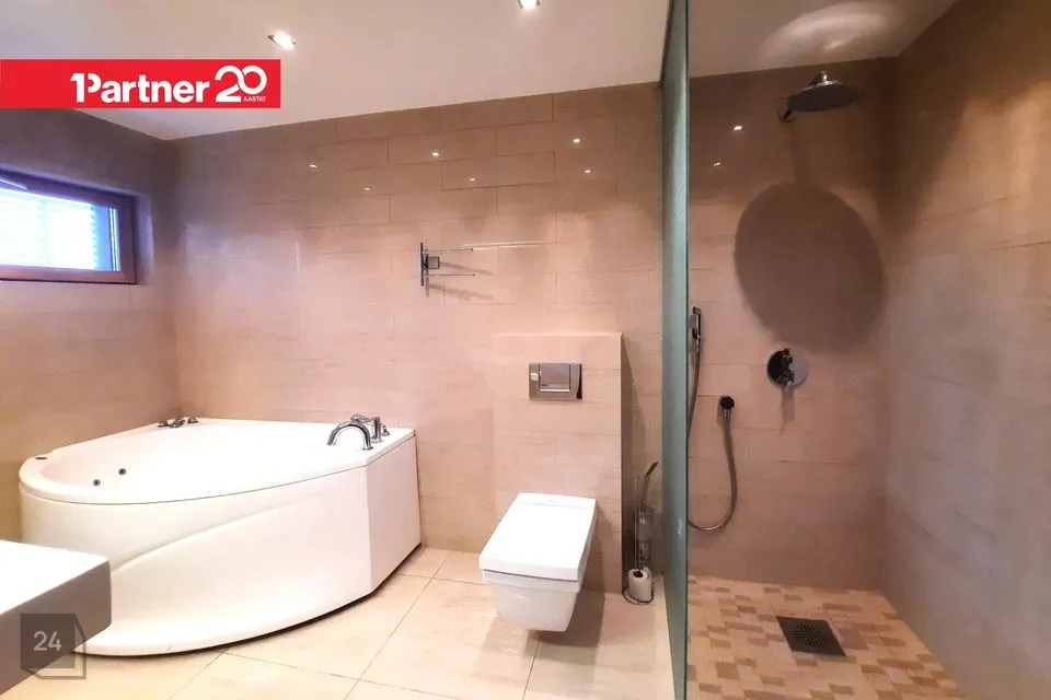Teisel korrusel on ka omaette duširuum mullivanni, dušinurga, wc ja elektrisaunaga. Duširuumi põrandat ja seinu katavad heledates toonides keraamilised plaadid.