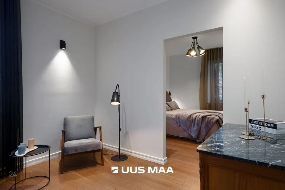 Üürile anda erakordselt avara planeeringuga ja maitsekalt renoveeritud kahetoaline korter Tallinna südalinnas, hinnatud Kentmanni tänaval, Ameerika Suursaatkonna vahetus läheduses.