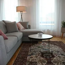 Korteris on avatud köögiga elutuba, 2 magamistuba, millest ühe saab kohandada näiteks kodukontoriks, saunaga vannituba ja ruumikas panipaik. Esikus on lisaks ka mahukas garderoobikapp. Magamistoas on sisseehitatud garderoobikapp ja uueväärne pesukastidega kontinentaalvoodi 180x200. Väikeses toas on lahtikäiv diivan ja töölaud. Sisustamise märksõnadeks on kombineeritud modernne uus mööbel ja klassikaline antiik ning kompromissitu mugavus. Hubasusust lisavad käsitöö villavaibad.