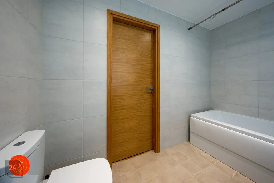 Korteri põrandaid katab naturaalne puitparkett, vannitoa põrandat ning seinu katavad kvaliteetsed keraamilised plaadid, pakkudes väljapeetud elavust ja soliidsust.