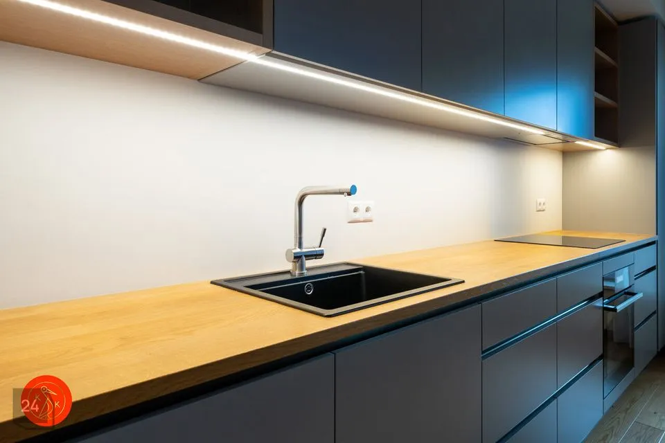 Kvaliteetsesse ja funktsionaalsesse köögimööblisse on integreeritud kõrge kvaliteedi ning suurepärase ja ajatu disainiga Electrolux kodumasinad: induktsioonpliit ja praeahi, õhupuhasti, nõudepesumasin ja külmkapp koos sügavkülmikuga.