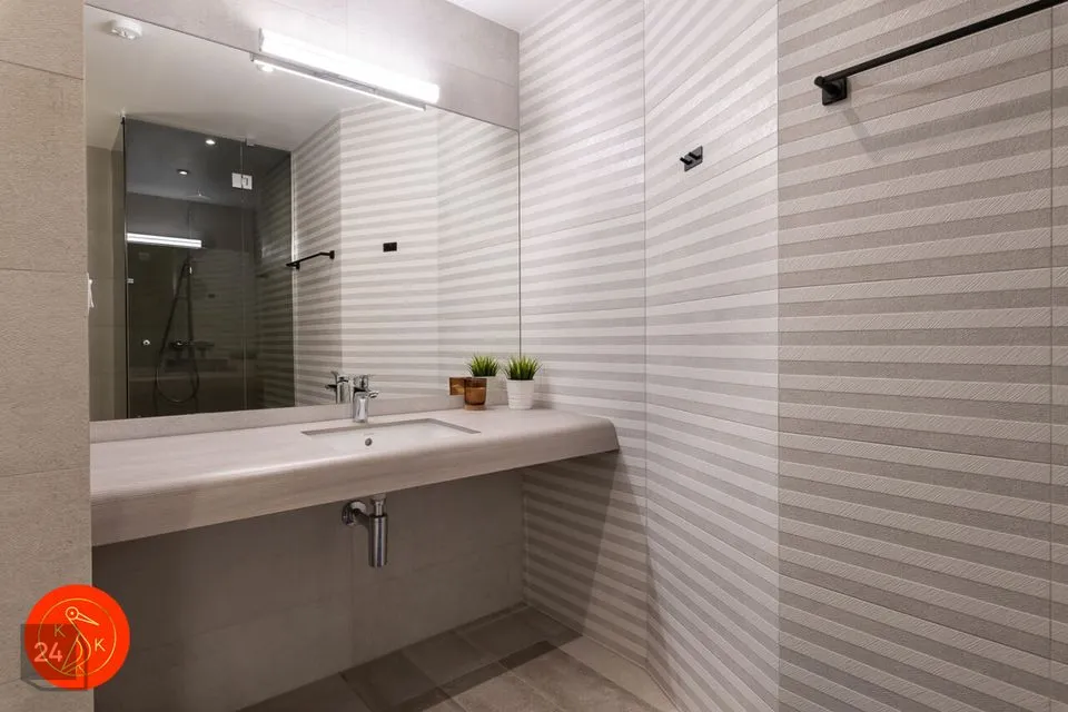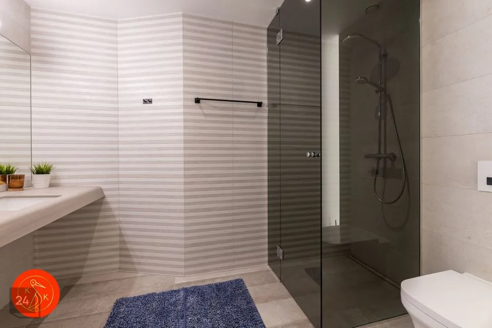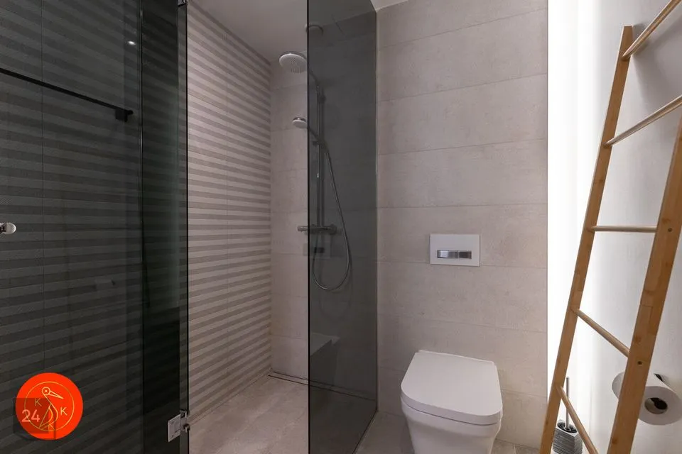 Korter on kujundatud neutraalsetes heledates toonides ning kasutades vaid kõige vastupidavamaid ja kvaliteetsemaid materjale. Korteri põrandaid katab naturaalne puitparkett, vannitubade põrandaid ning seinu katavad kvaliteetsed keraamilised plaadid, pakkudes väljapeetud elavust ja soliidsust. Rõdul on stiilne ja vastupidav ECO-Deck puidust ja plastikust terrassilaud.