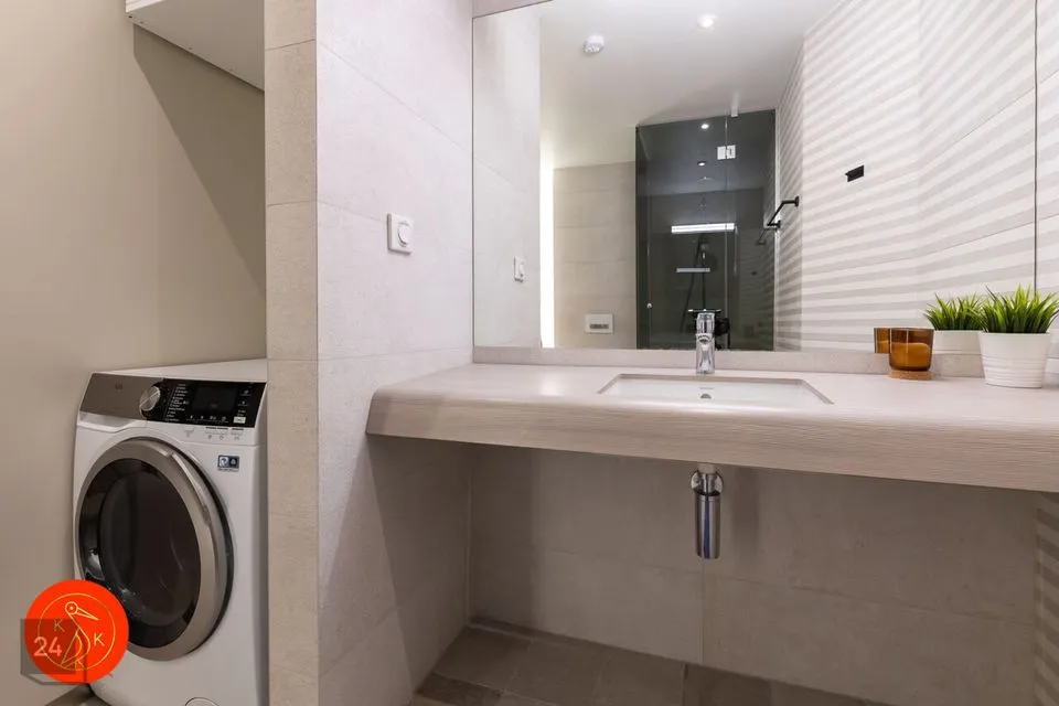 Isiklike asjade paigutamiseks on korteri esikusse tellitud mahukas garderoob. Magamistoas on lisaks suurele voodile mahukas “Walk-in” garderoob. Vannitoas on pesumasin/kuivati.