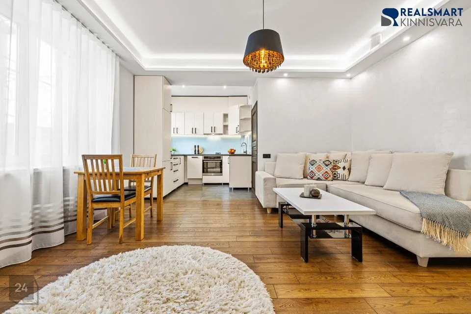 Korteris siseviimistluses on kasutatud kvaliteetseid materjale ja rahulikke värvitoone. Korter on stiilselt sisustatud ja väga heas seisukorras. Korteris on ka soojustagastusega ventilatsiooniagregaat ja puutetundlikud valgustuse lülitid.