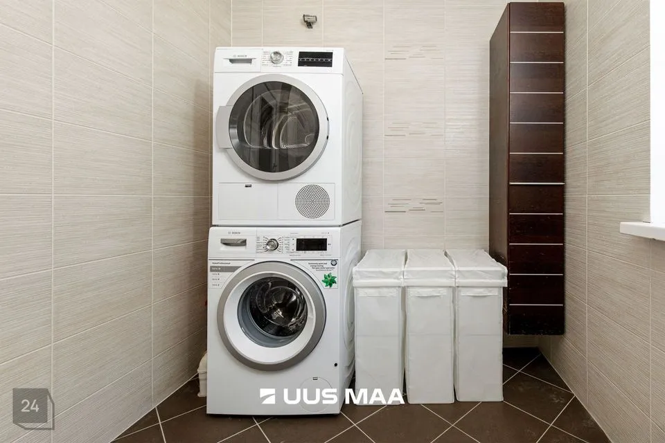 Mugavust pakub majapidamisruum, mis ühtlasi on ka teine sanruum. Siin asuvad pesumasin ja kuivati: ideaalne koht koristusesemete hoiustamiseks.