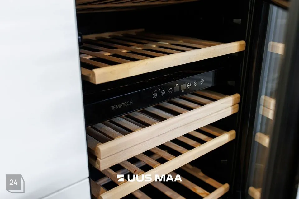 Köögitehnikast on: suur sügavkülmik, suur külmik, induktsioonpliit, ahi, laeõhupuhasti, nõudepesumasin, veinikülmik.