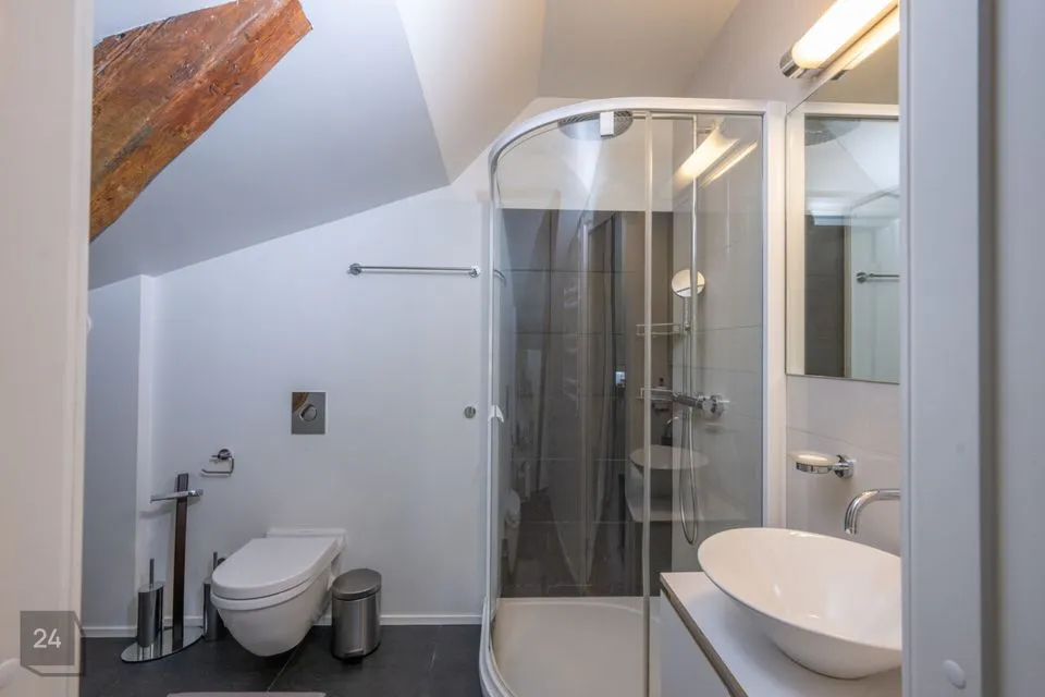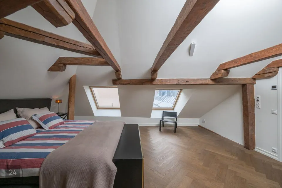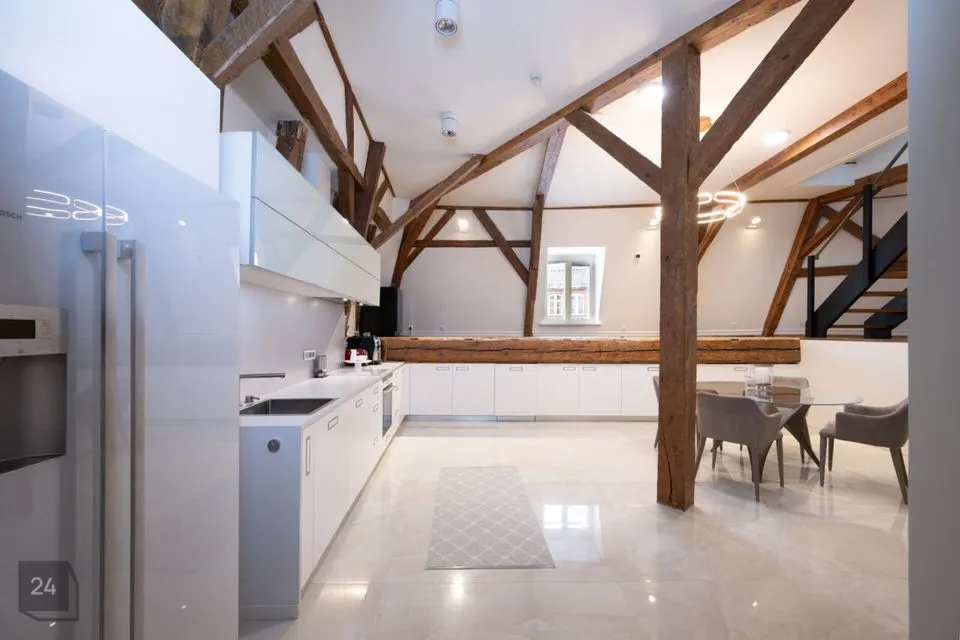 The apartment is characterized by a spacious layout and historical wooden beams, which add to the Old Town atmosphere. The well-structured layout ensures pleasant privacy. An ideal choice for those looking for something particularly luxurious and personal.