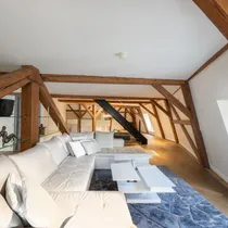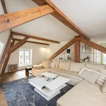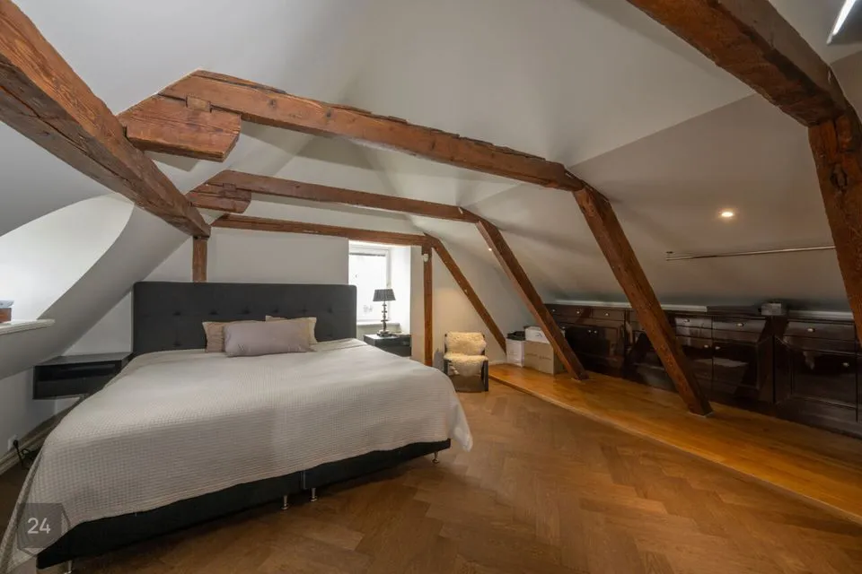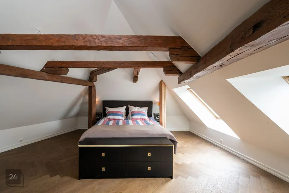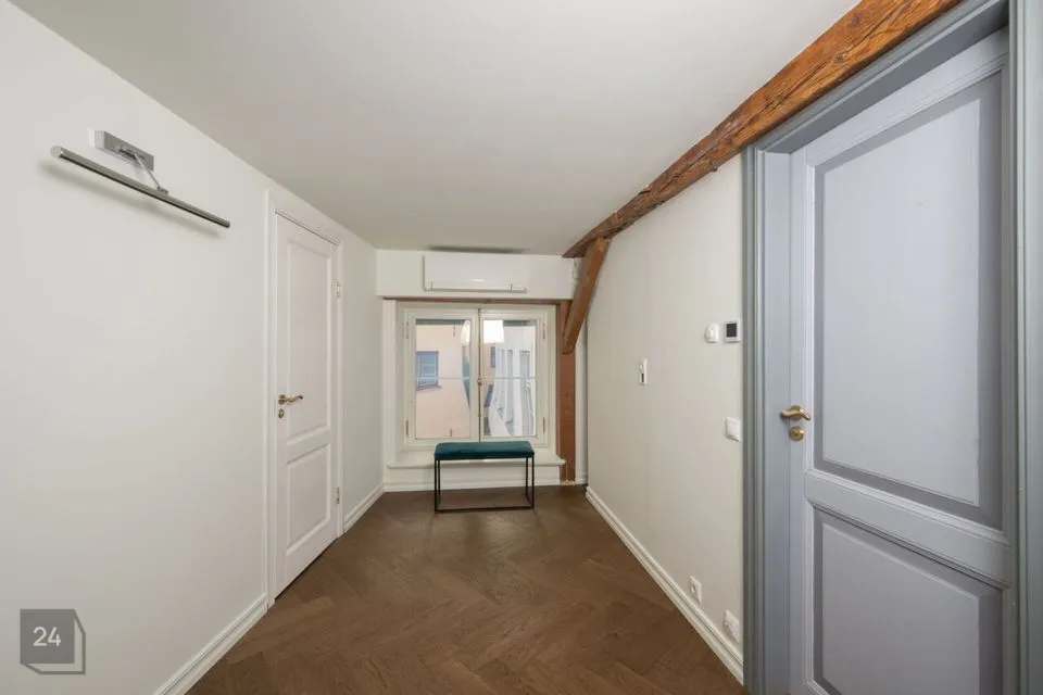 A unique and bright 4-room penthouse for rent across several floors in the heart of Tallinn's Old Town. The apartment is located on the top floor of a completely renovated historical building, which was awarded the title of the most beautiful renovated building in the Old Town in 2011.