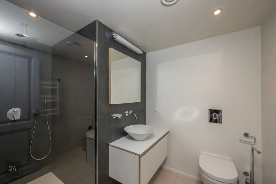 A private floor with two separate bedrooms, one of which is a master bedroom with its own shower room and toilet. In addition, a bathroom with a bathtub and skylights, a walk-in wardrobe and a cozy sitting area. The windows of all bedrooms open onto a peaceful courtyard, ensuring privacy and silence.