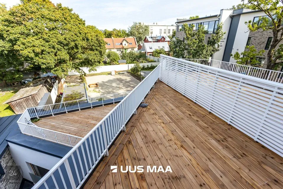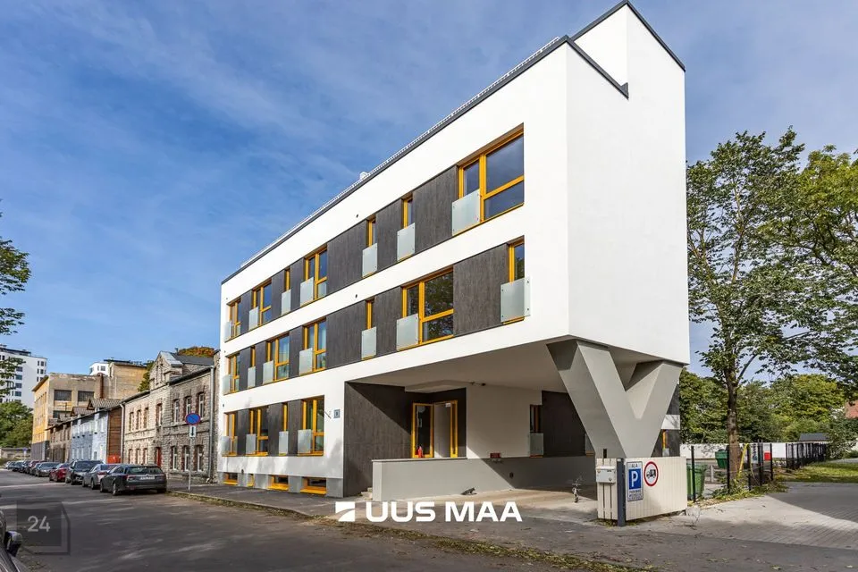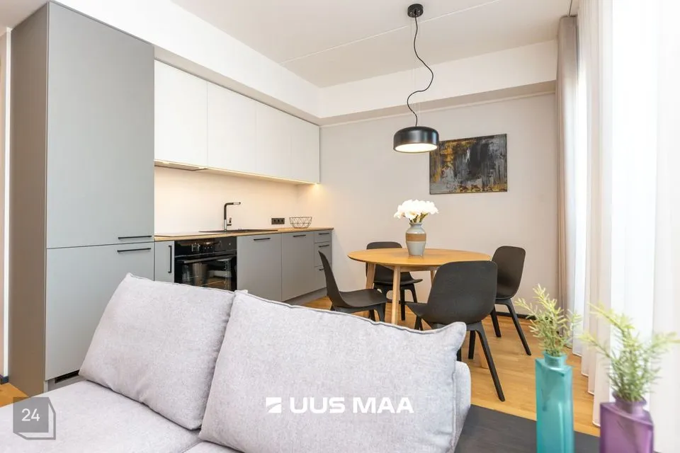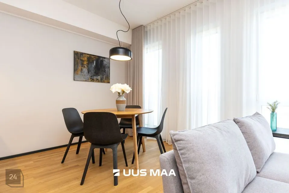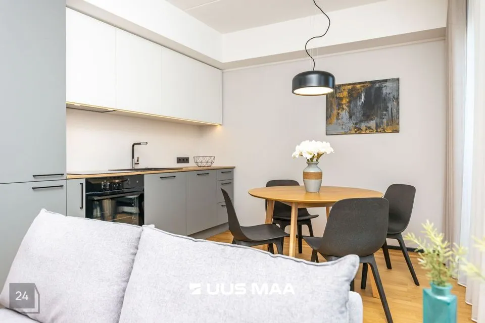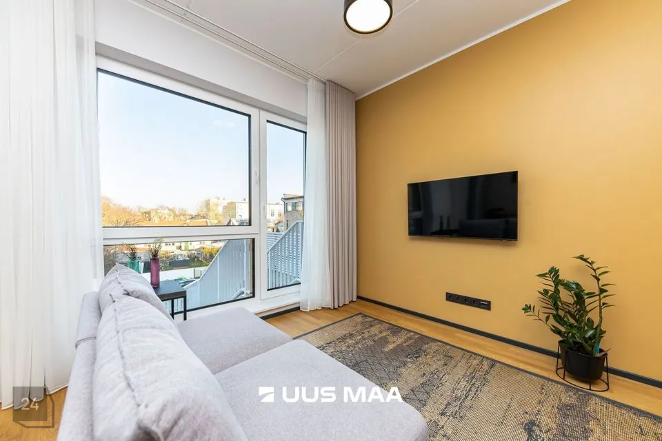 Üürile anda möbleeritud, suure rõduga 2-toaline korter uueväärses majas vaiksel Katusepapi tänaval Kesklinna piiril.