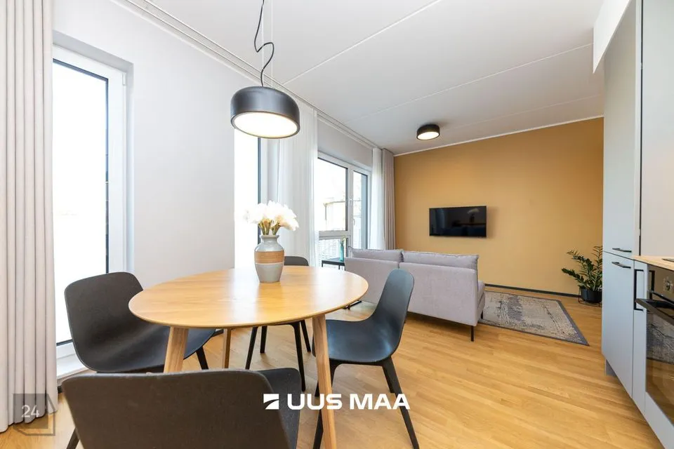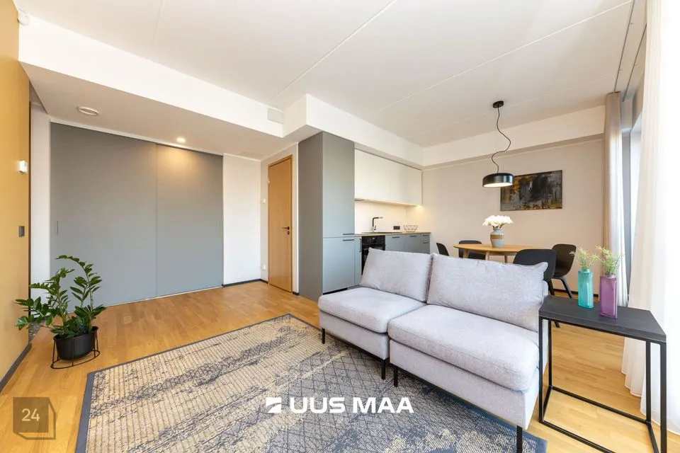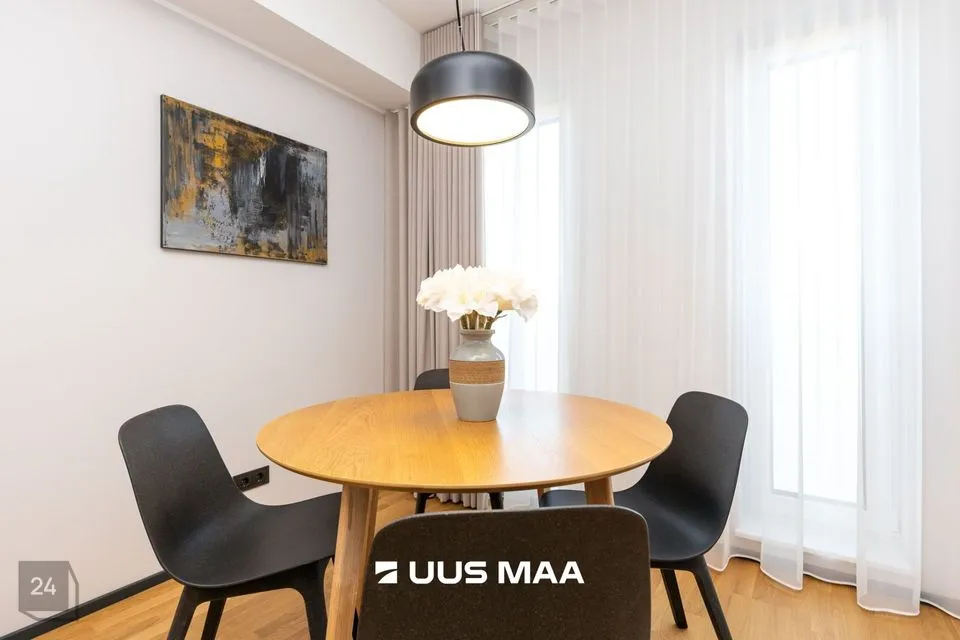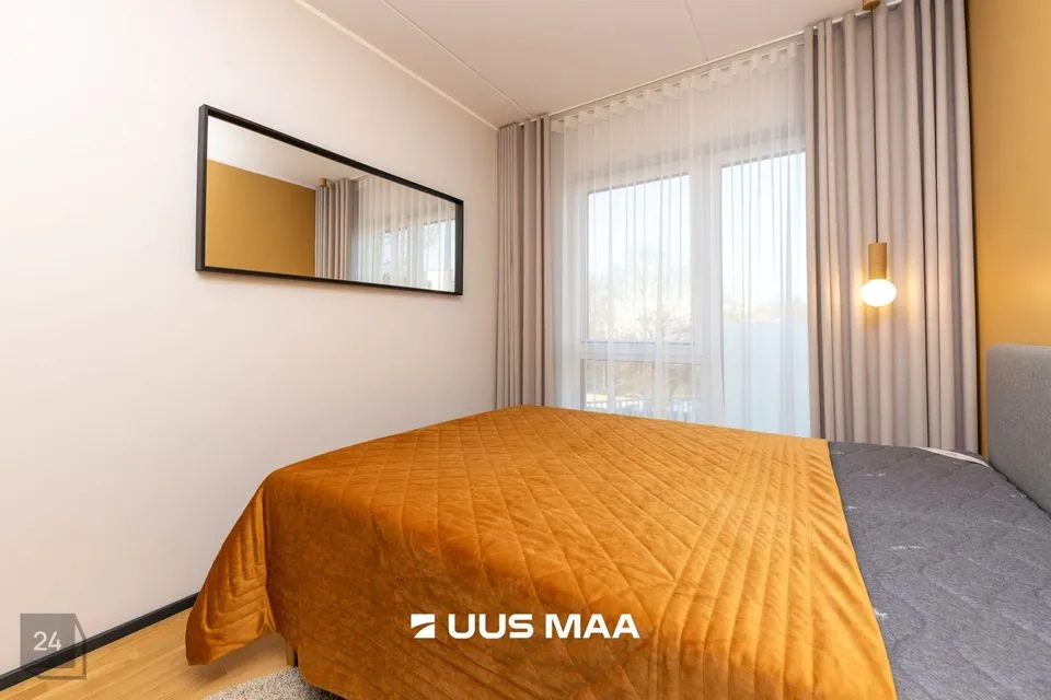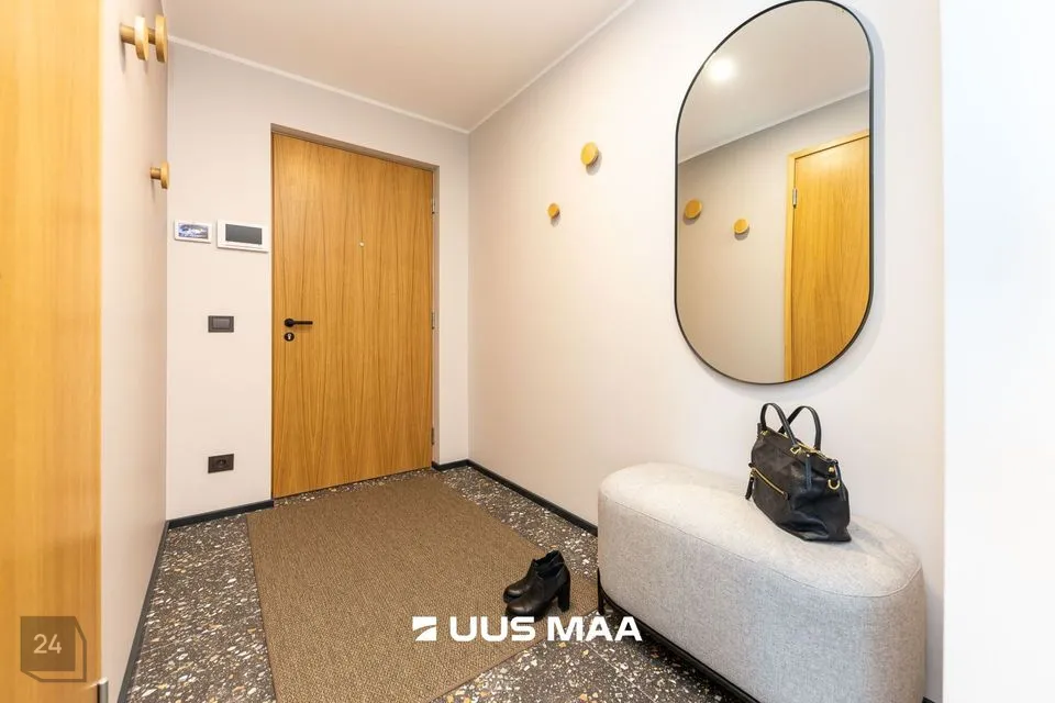 Ruumide koosseisu kuulub: esik, valgusküllane köök-elutuba, magamistuba, avar vannituba ja suur rõdu (25 m2). Kvaliteetne köögimööbel on varustatud kogu vajamineva tehnikaga (s.h. nõudepesumasinaga).