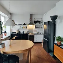 Köök: gaasipliit, avatud köök, külmik, köögimööbel