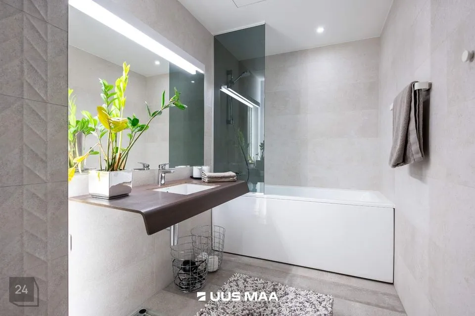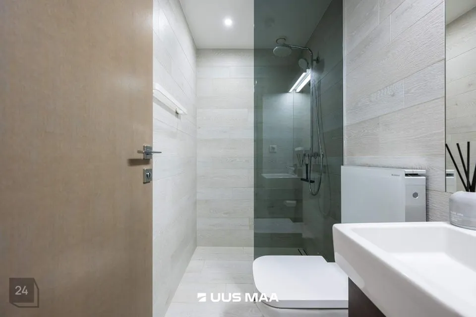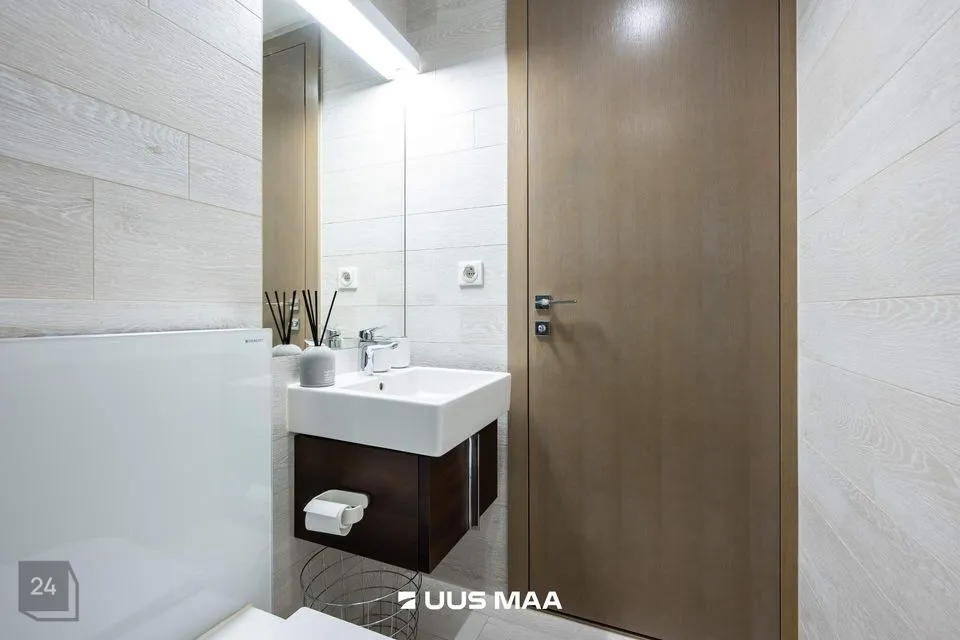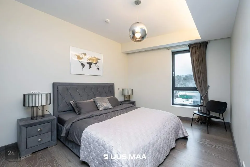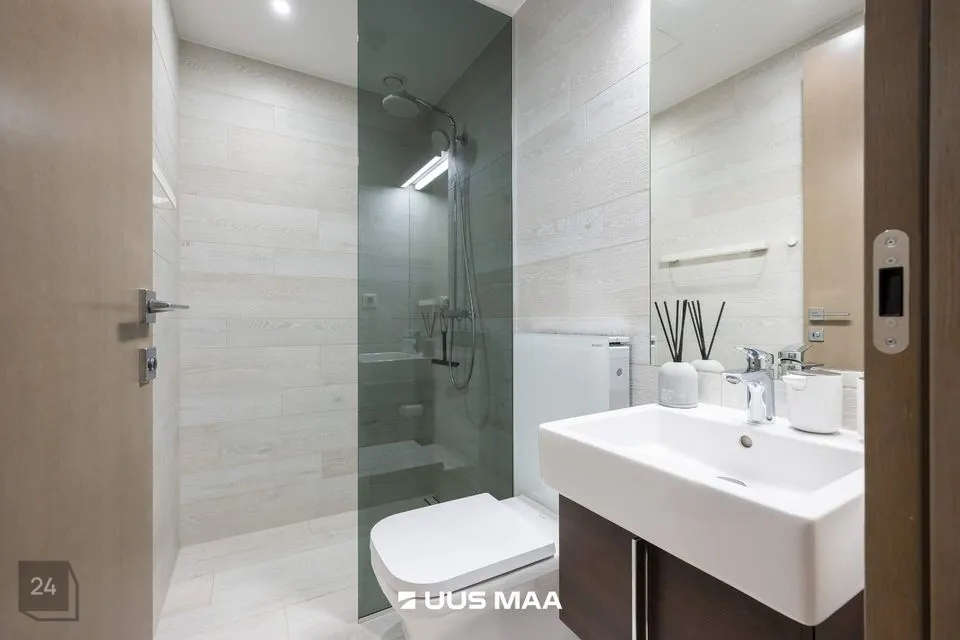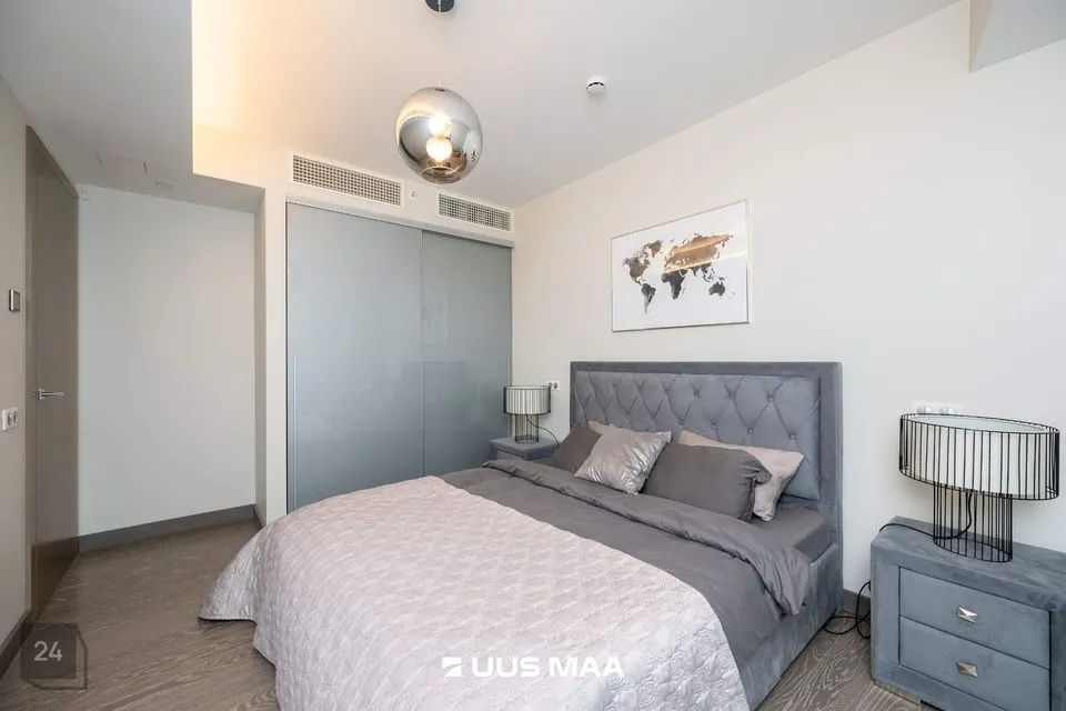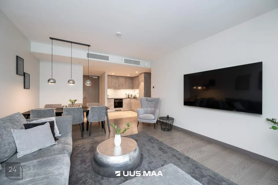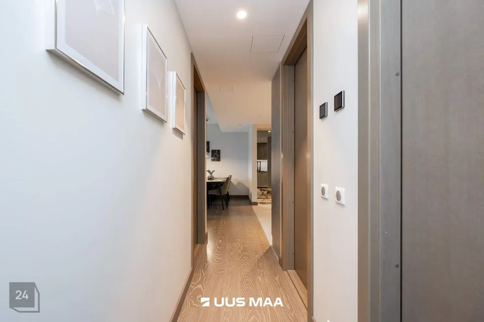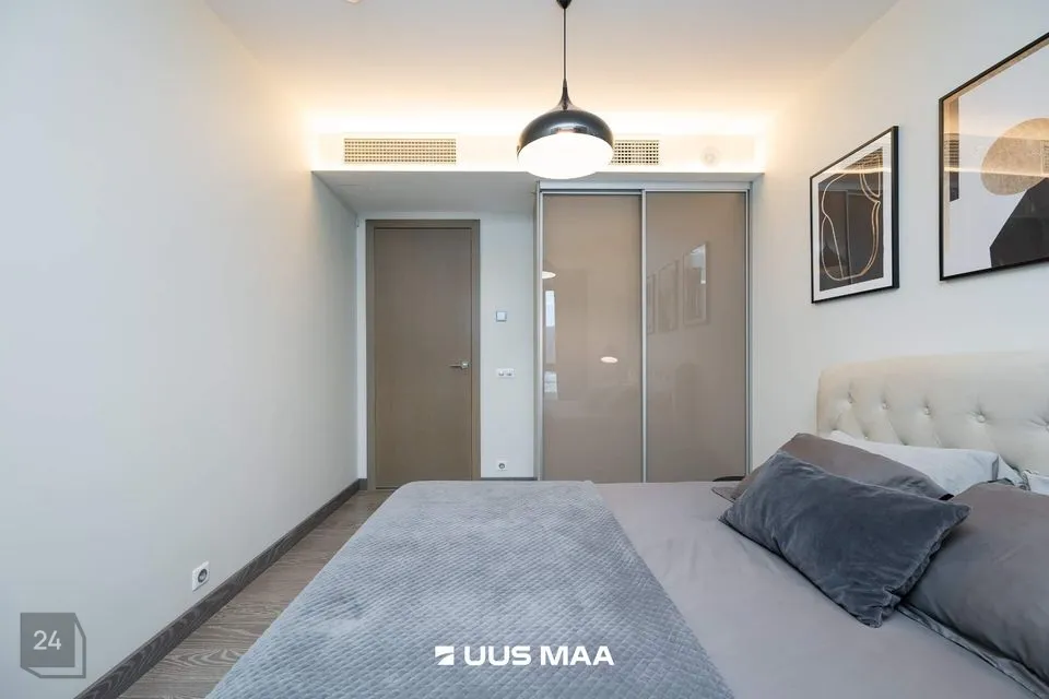 Korteris on avatud köögiga elutuba, mahuka garderoobiga esik 2 magamistuba ning 2 wc-vannituba. Vannitoas on pesumasin, kuivati. Korter on varustatud targa maja lahendusega, mille abil saad nutiseadmest oma kodu efektiivselt juhtida. Maja sisehoovis asub tenniseväljak ja lastele mänguplats. Kõik eluks vajalik korteris olemas.