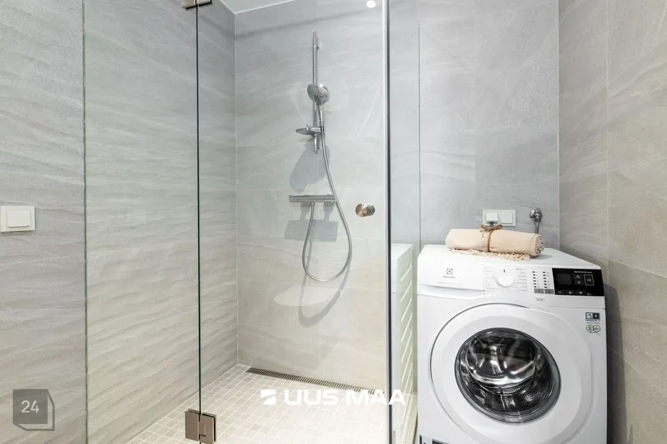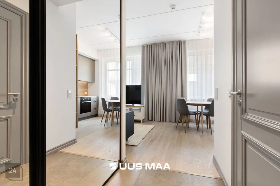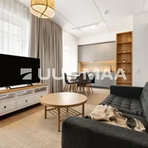 2. korrusel asuv suurte akendega korter on “paberite järgi” küll 1-toaline, kuid tänu suurepärasele planeeringule on korter sisustatud justkui 2-toaline korter. Täielikult möbleeritud hubases korteris on avatud köögiga elutuba, magamistuba, avar vannituba ja sisse ehitatud garderoobiga esik. Hubastes kuid samas elagantsetes toonides korter on möbleeritud väga praktiliselt ja läbimõeldult, lisaks mööblile on olemas ka televiisor ja pesumasin, köögis ka nõudepesumasin.