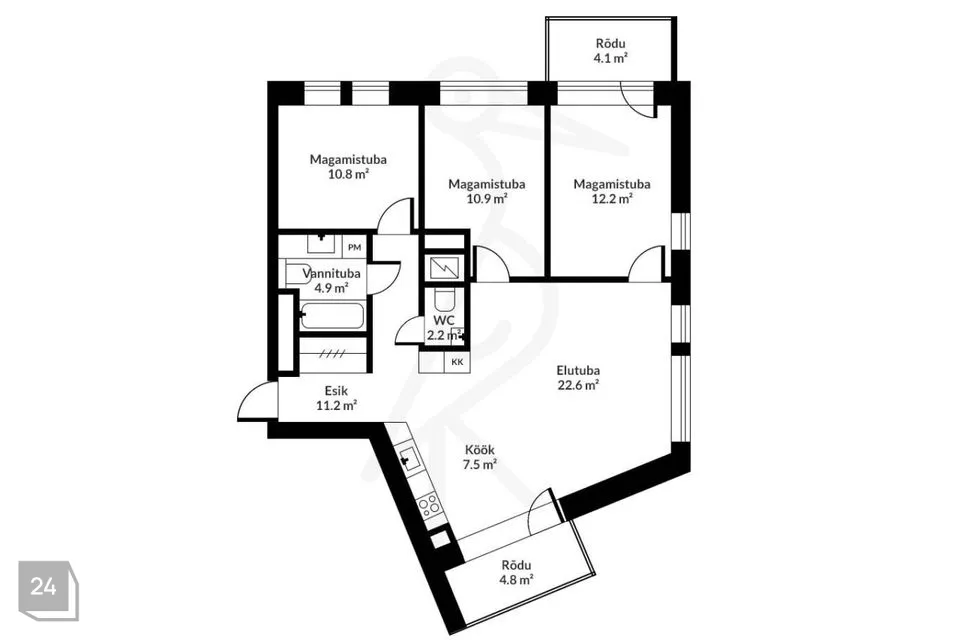 Korteril on lisaks 2 klaasitud rõdu, kus saab nautida hommikukohvi või õhtust päikeseloojangut.