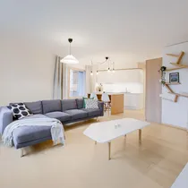 Eluruumid on kujundatud silmas pidades mugavust, funktsionaalsust ja kodusust. Korterit iseloomustavad puhtad jooned, naturaalsed materjalid ja modernne siseviimistlus. Läbivalt kasutatud rahulik värvipalett loob tänapäevase, ent sooja ja hubase meeleolu.
