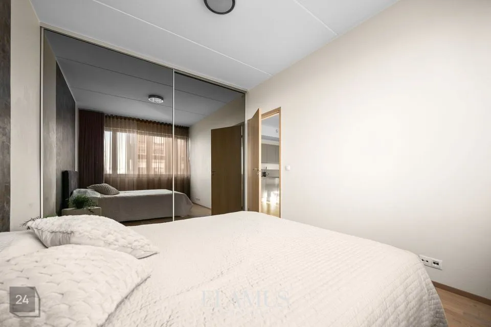 Magamistuba: mugav 160x200 cm voodi, madrats ja suur peegelliugustega garderoobikapp. Samuti vaade sisehoovi.