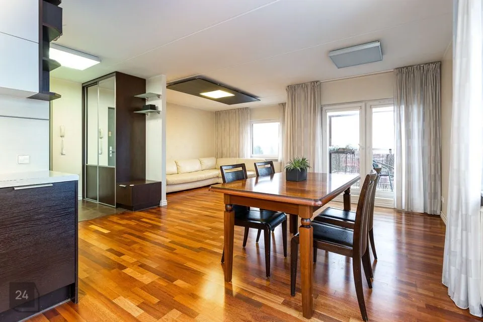 Korter on väga hea ja praktilise planeeringuga. 4 tuba -. elutuba avatud köögiga, kolm magamistuba, vannituba mullivanniga ja saun ning eraldi wc.