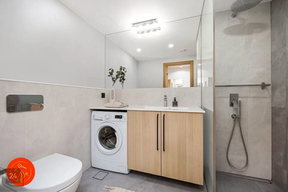 Vannitoas on lisaks sanitaartehnikale ja vannitoamööblile ka Electrolux pesumasin.