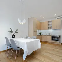 Eritellimusel valminud funktsionaalsesse köögimööblisse on integreeritud kvaliteetne köögitehnika: nõudepesumasin, Electrolux toiduahi, induktsioonpliit, õhupuhasti ja külmkapp koos sügavkülmikuga.