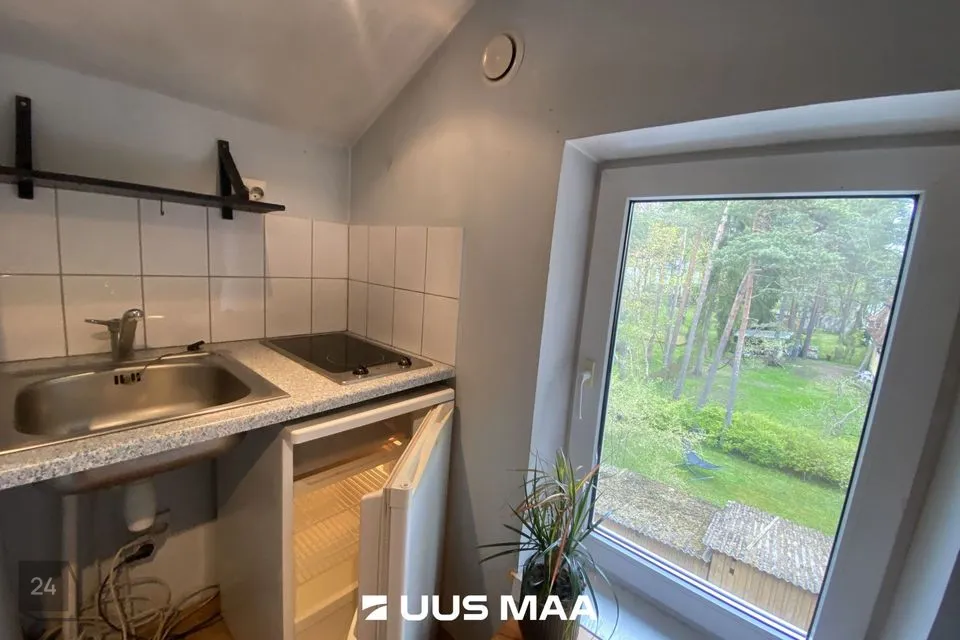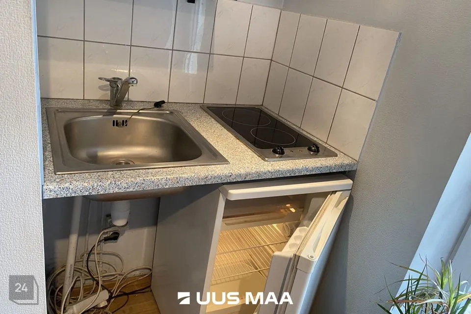 Korter on küll pisike, kuid kõik vajalik on kenasti olemas. Väikesele pinnale on mahutatud esikunurk koos nagiga, miniköök külmiku, keraamilise pliidi ning kraanikausiga. Teise seina on paigutatud voodi koos öökapiga. Korterisse on mahutatud ka vannituba wc ja dušhinurgaga. Soojaks saab korteri toas oleva elektriradiaatoriga, vannitoas lisaks elektriline põrandaküte. Korteri juurde kuulub üks parkimiskoht hoovis.