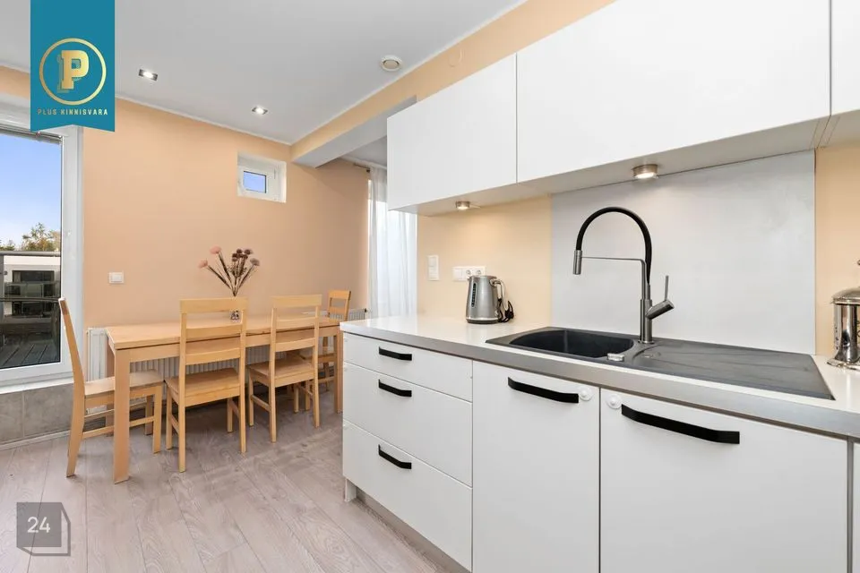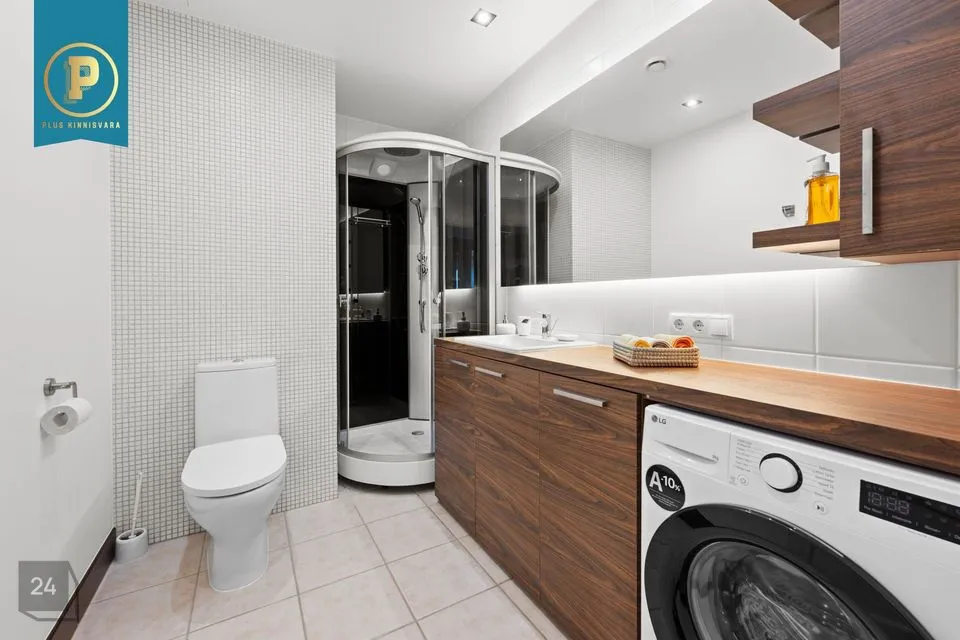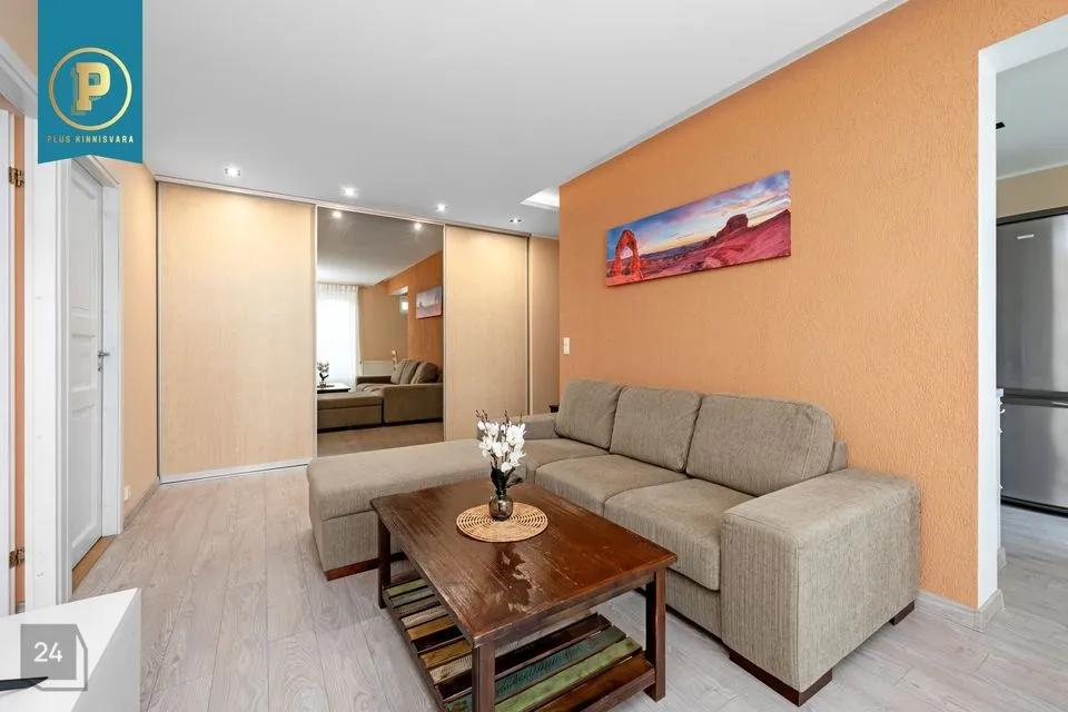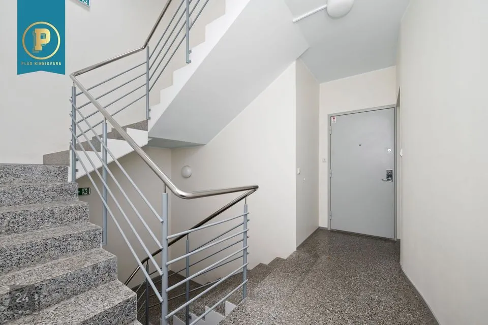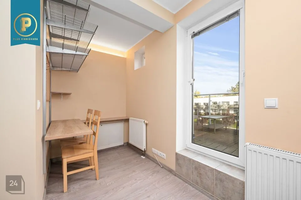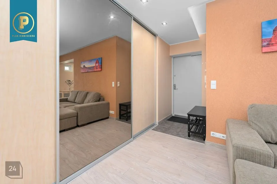 Pakutav kodu asub 4-kordse maja viimasel korrusel. Korteri koosseisu kuuluvad suure garderoobikapiga esik, magamistuba, vannituba, kaminaga elutuba, pooleldi avatud köök, kontorinurk ning avar terrass (11,3 m2). Korter on hiljuti läbinud värskenduskuuri, on täielikult möbleeritud ja antakse üürile kogu piltidel oleva sisustusega.